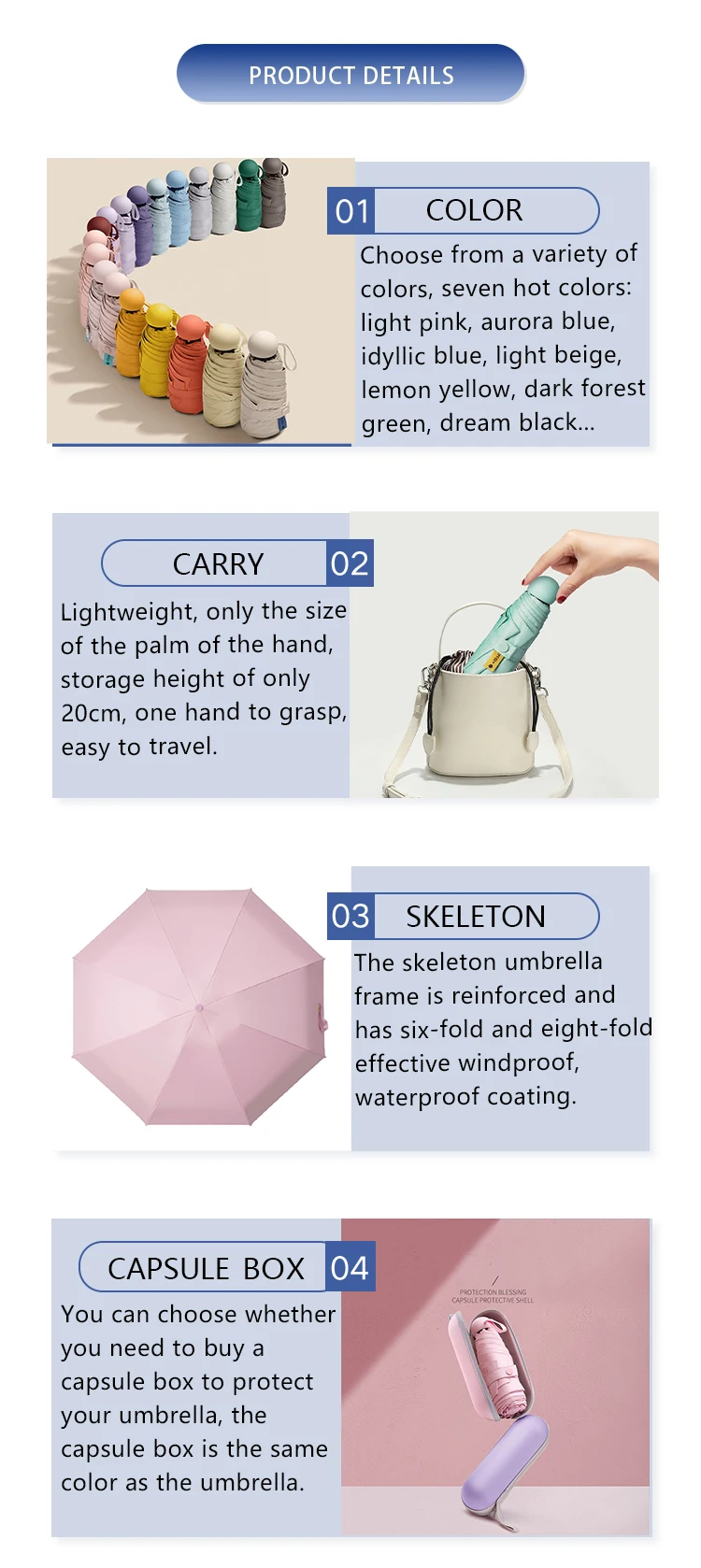 HomeUltralight compact mini capsule umbrella with UV protection and five-fold designSKU: 5880c1ef-00e0-4993-b530-b37d4c395276£14.61PriceColorQuantity*Add to CartBuy Now